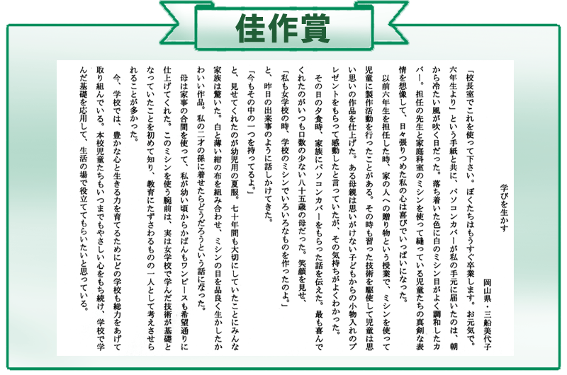 > 家庭用ミシン > ミシンの日 > 平成16年「3月4日はミシンの日」入賞作品一覧 > 佳作賞